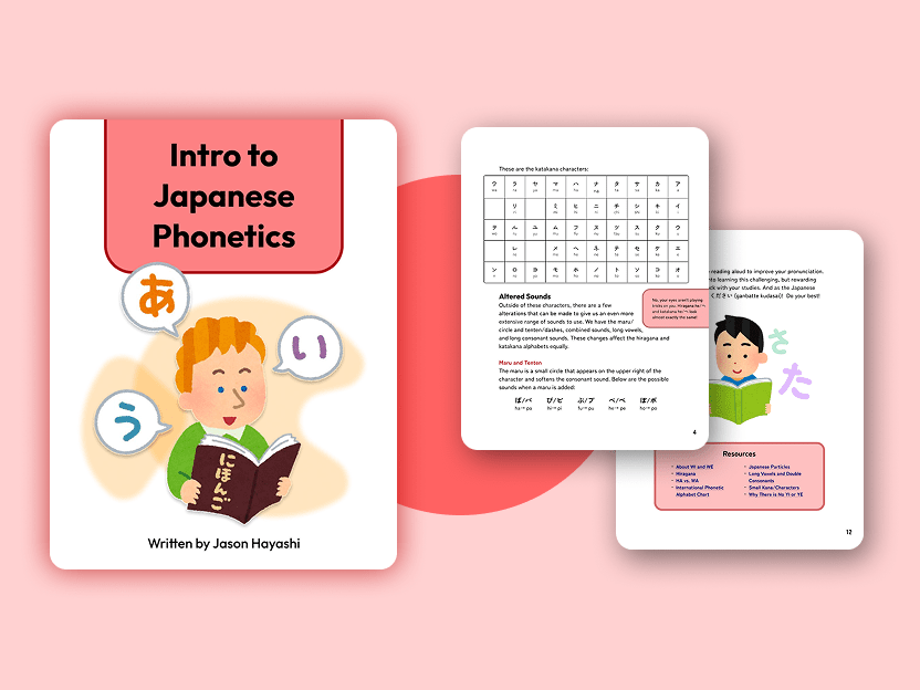 This educational document provides an overview of the Hiragana and Katakana alphabets, and discusses how to pronounce each sound.